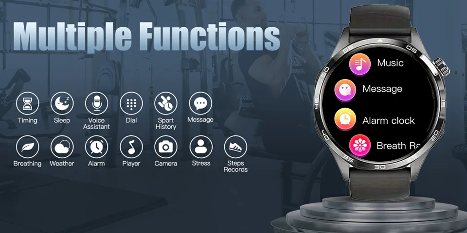 Function: fitness tracker,sleep tracker,Mood Tracker,Message Reminder,Call Reminder,Answer Call,Push Message,Calorie Counter,Heart Rate Tracker,Interactive Music,Calendar,Compass,Calculators